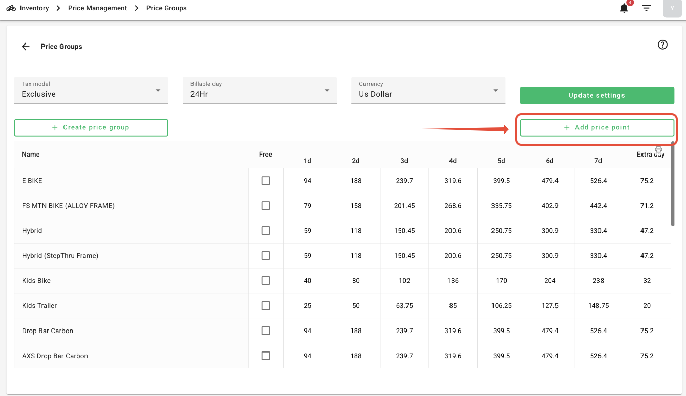 If you’d like to offer additional pricing options—such as 2-day, 3-day, or 1-week rentals—you can easily add them using the Price Groups settings.
